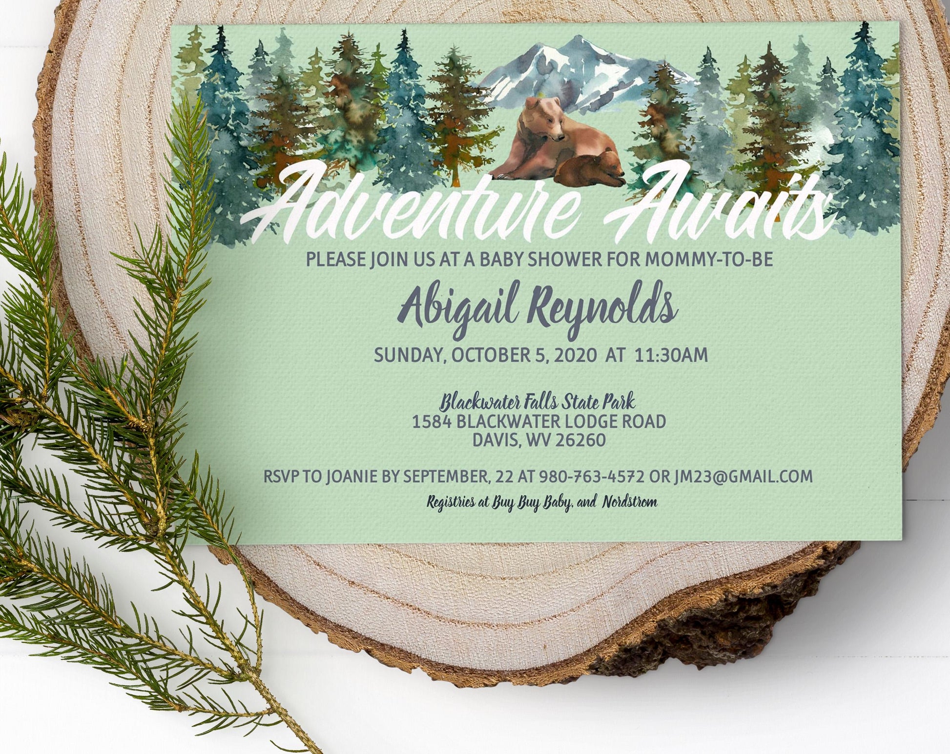 Bear Woodland Baby Shower Invitation Gender Neutral, WMBByS