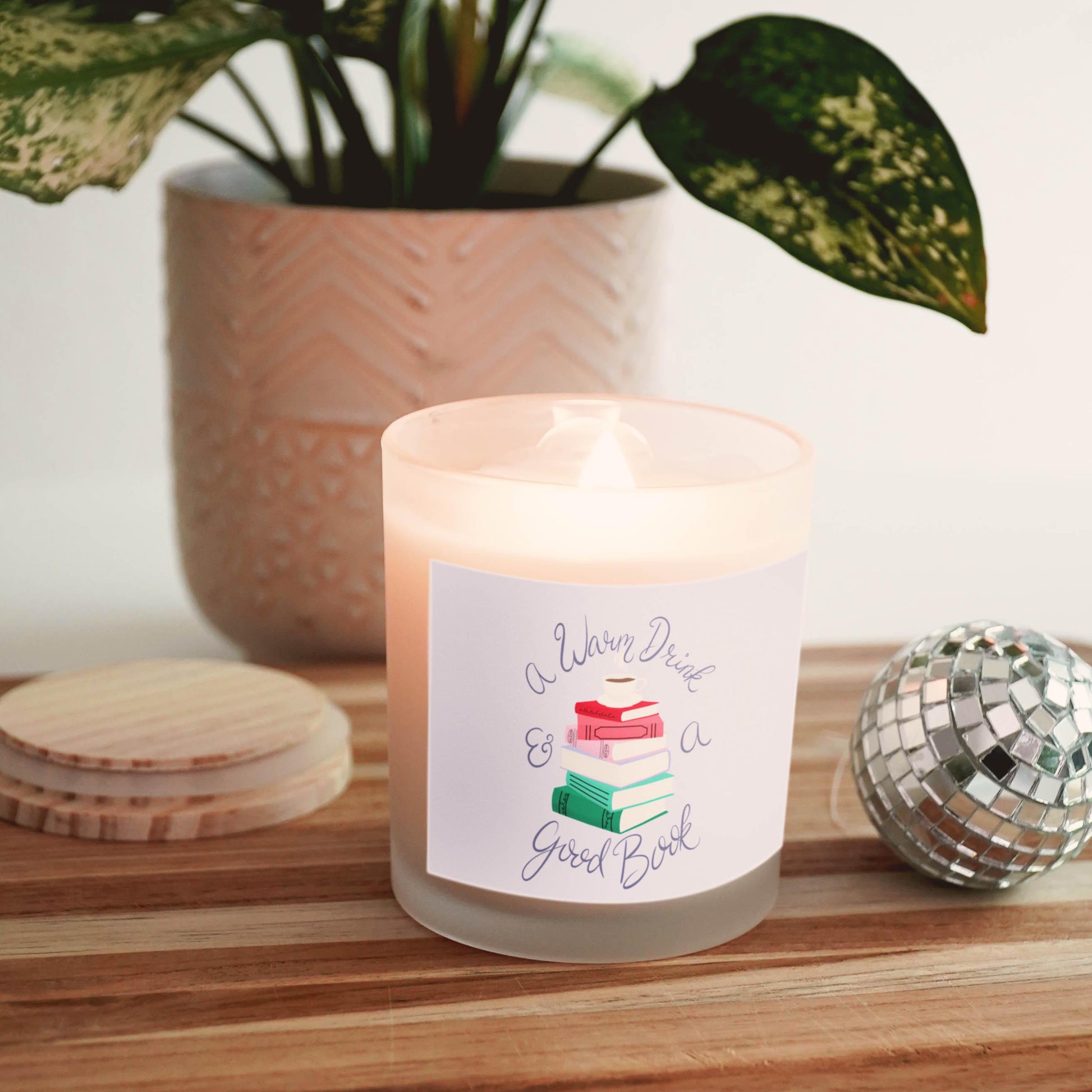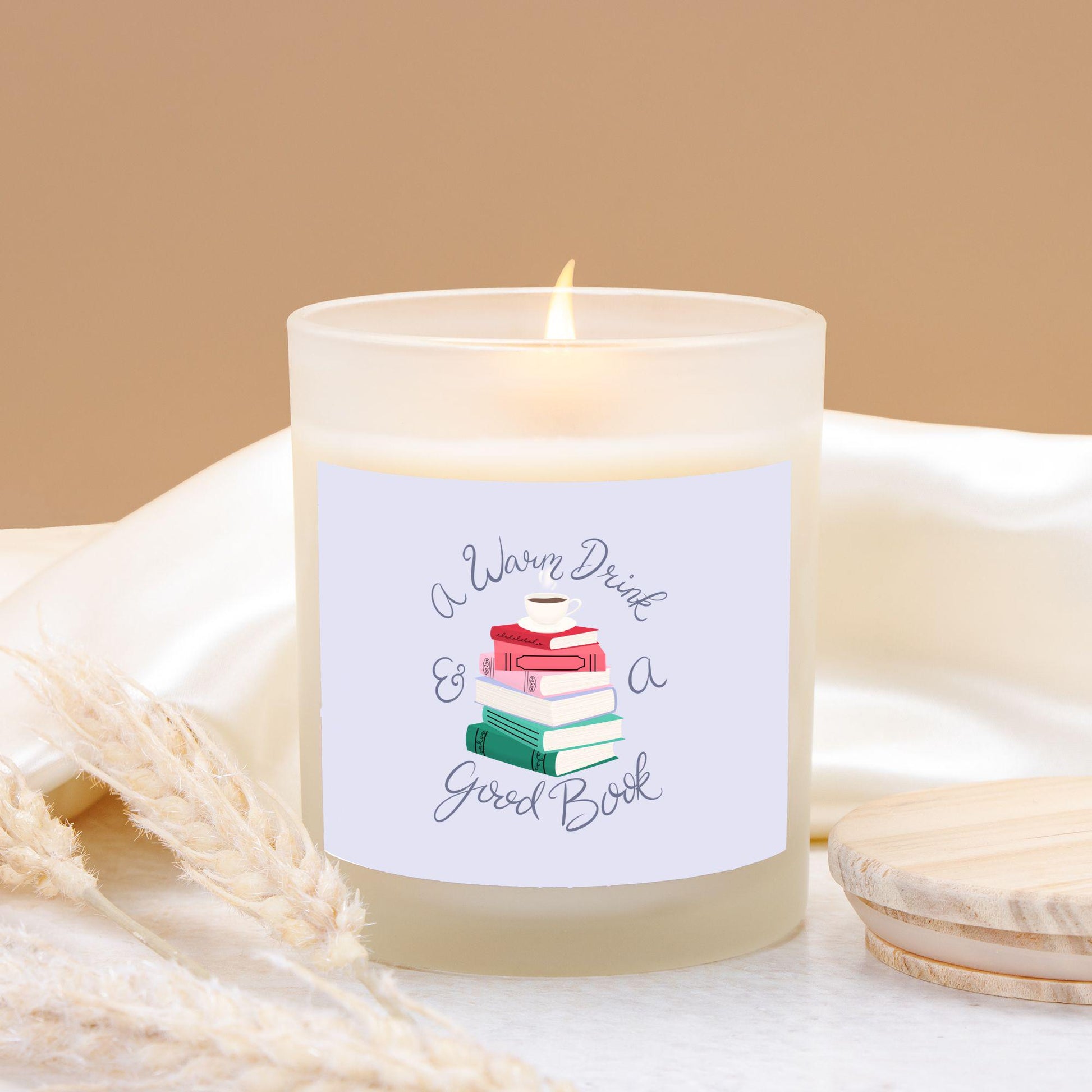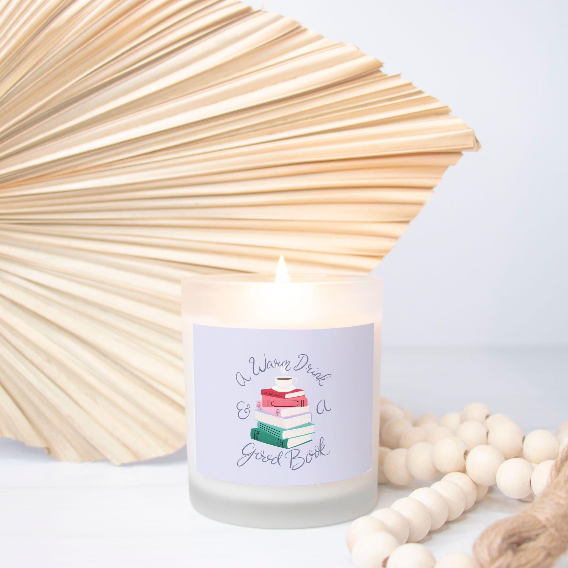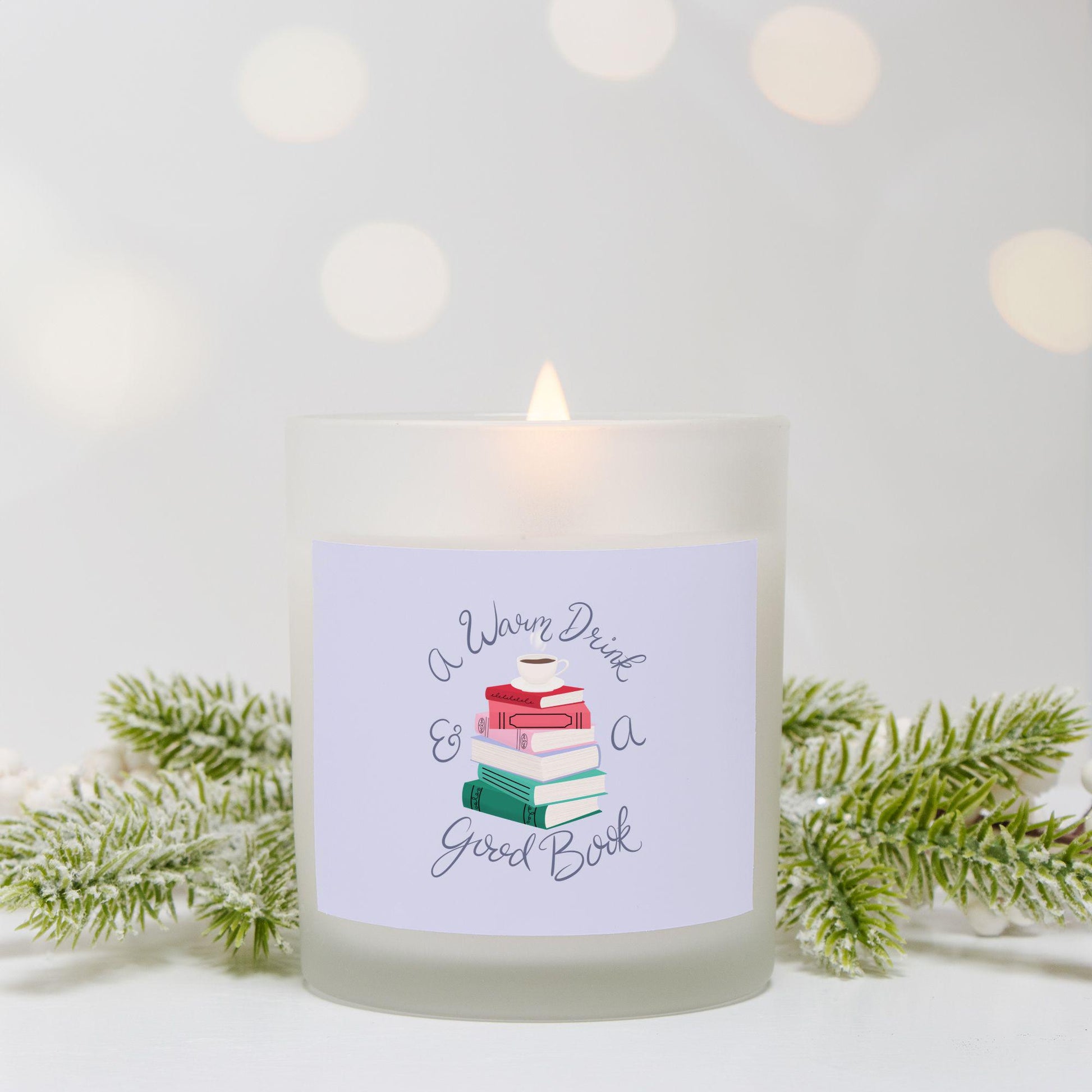 A Warm Drink & a Good Book Frosted Glass Candle, 11 oz.