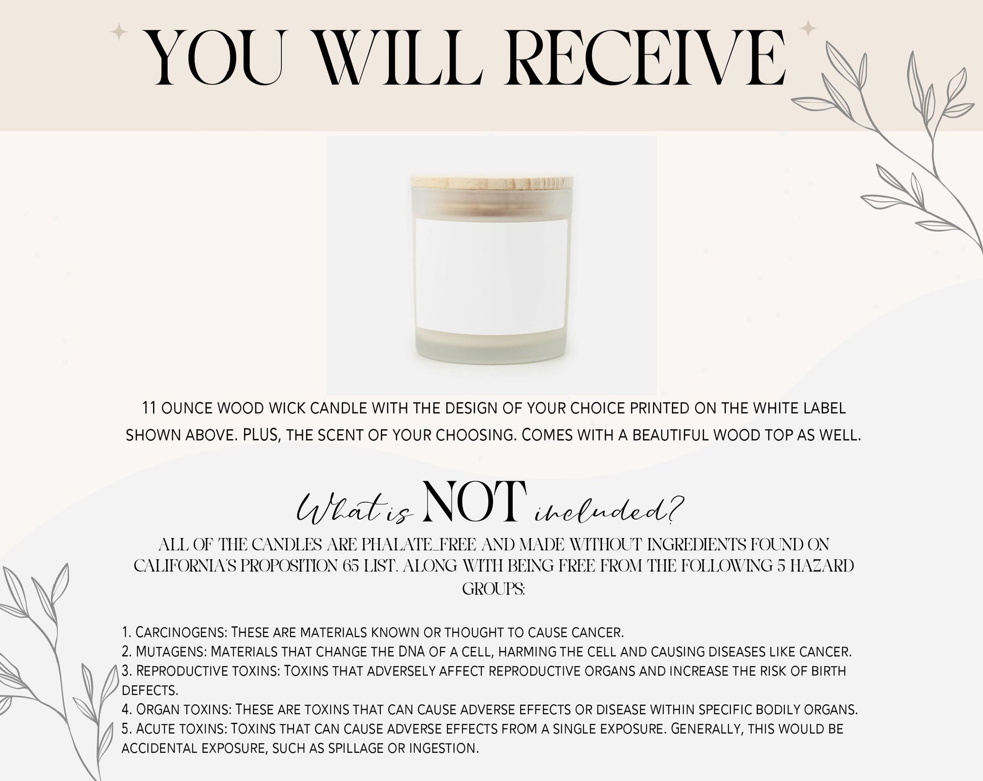 The Coconut Soy wax is clean-burning, biodegradable, and natural. A vegan blend of natural apricot, coconut, soy, and a minuscule amount of highly refined food-grade paraffin wax. The wax is toxin-free, paraben-free, phthalate-free, and comes from renewable sources. The wood wick is eco-friendly and made from FSC Certified Wood, hand-crafted +, and made in the USA.