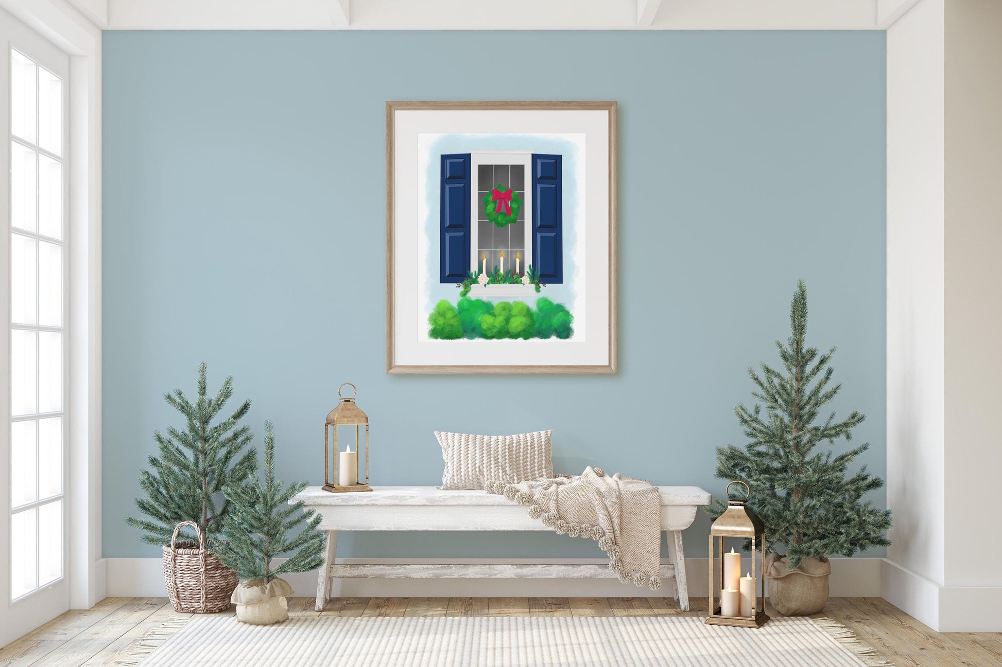 This cozy holiday-themed window print is a delightfully charming addition to your home decor. Perfect for adding a touch of warmth and cheer to any room, this print evokes the comfort of home and the beauty of seasonal decor. Ideal for your living room, entryway, or dining area, it brings a sense of cozy elegance and seasonal charm.