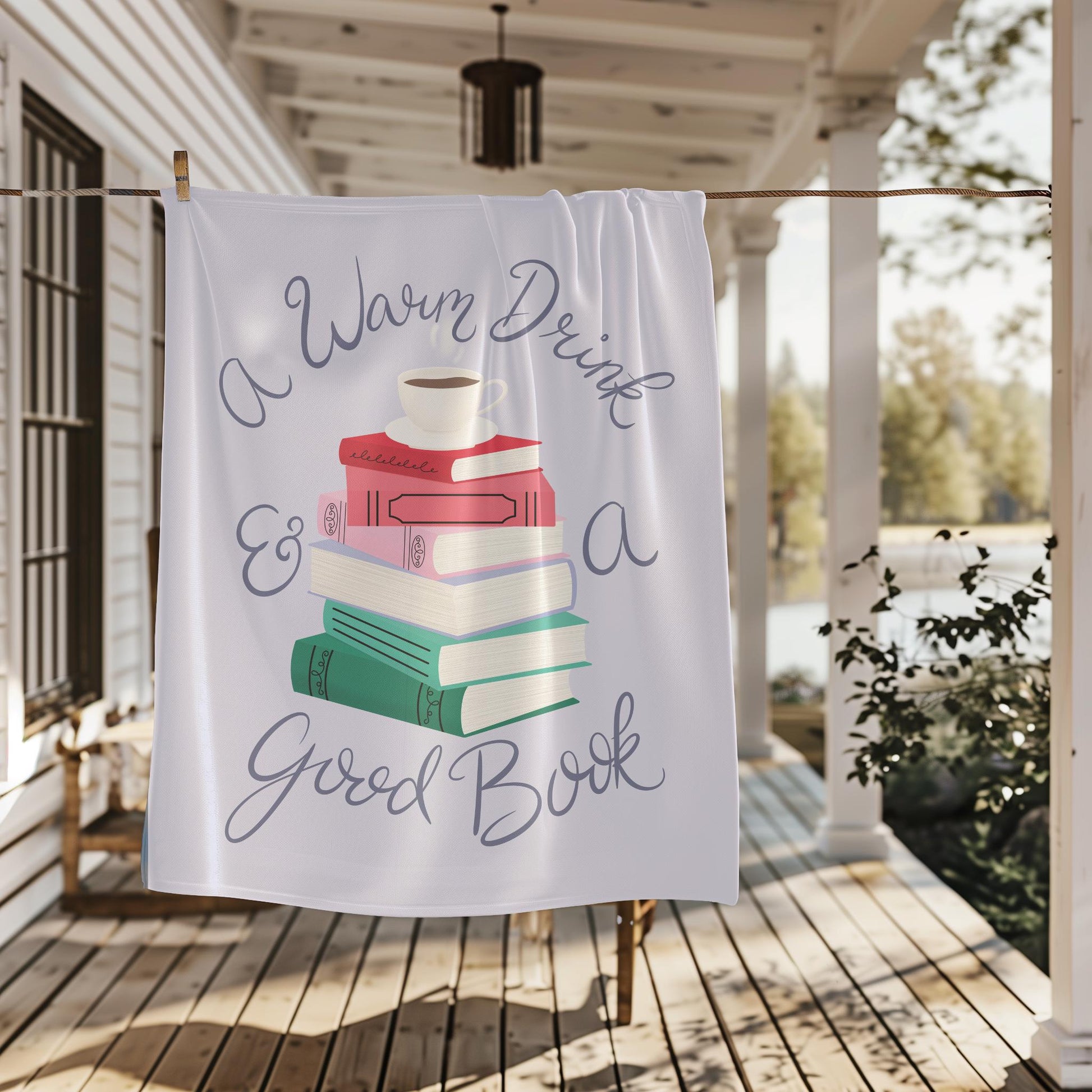 A Warm Drink & a Good Book Minky Blanket, Available in Two Sizes